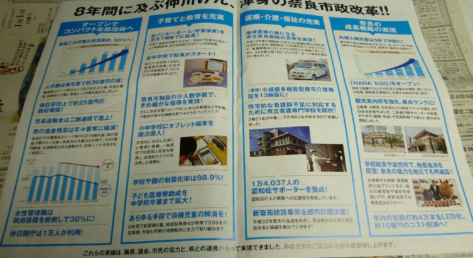 市の予算は約1275億円と多いです。借金の返済や福祉予算の多さ、これらは、どこの自治体でも同じ問題ですが、当選者の皆様は、一つ一つの問題・課題を、少しでも改善して頂きたいものです。