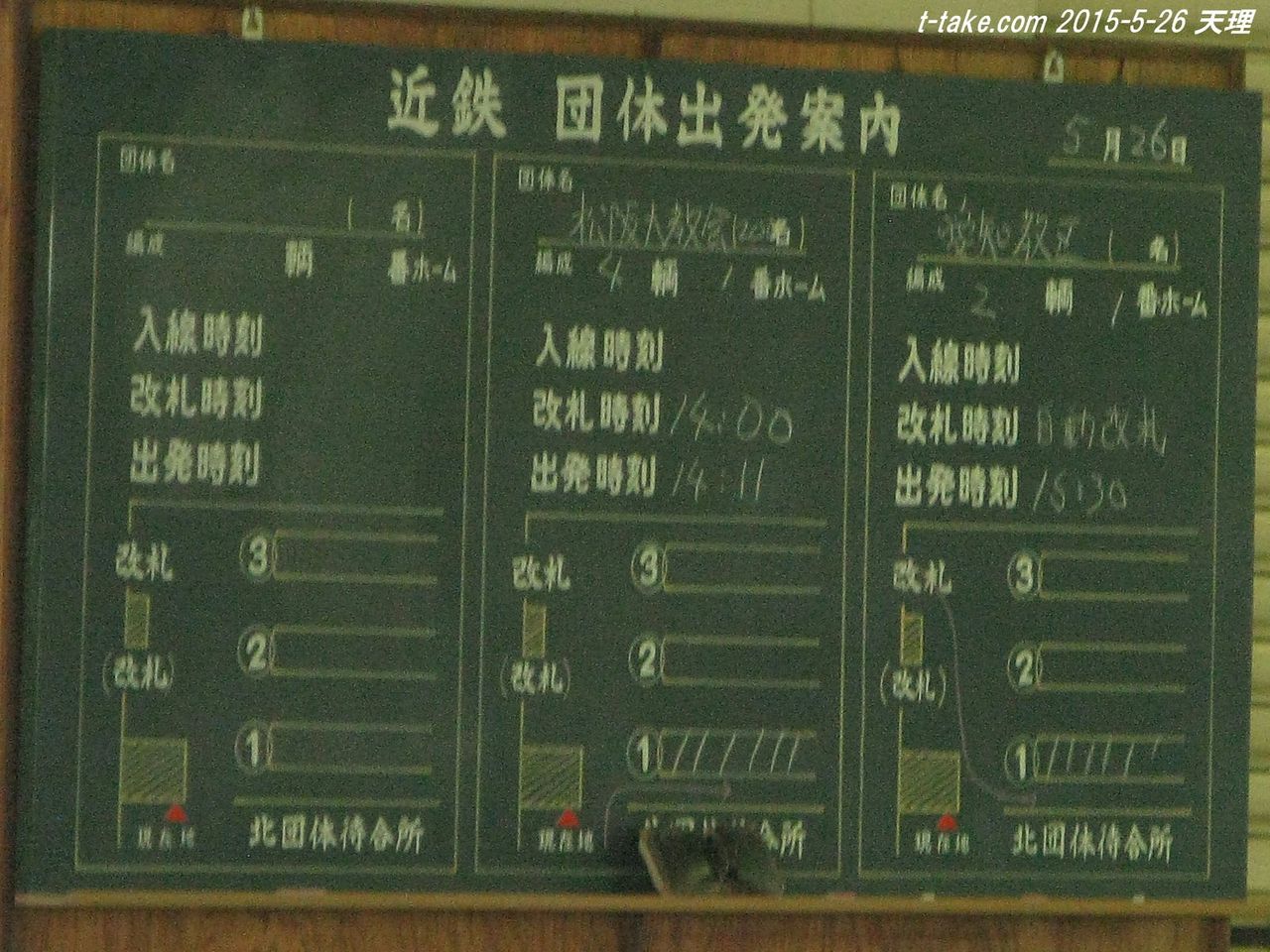 【画像】天理駅団体用待合室にある、団体列車用の案内