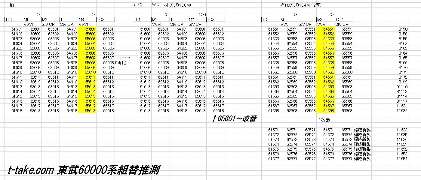 【画像】東武60000系組替推測