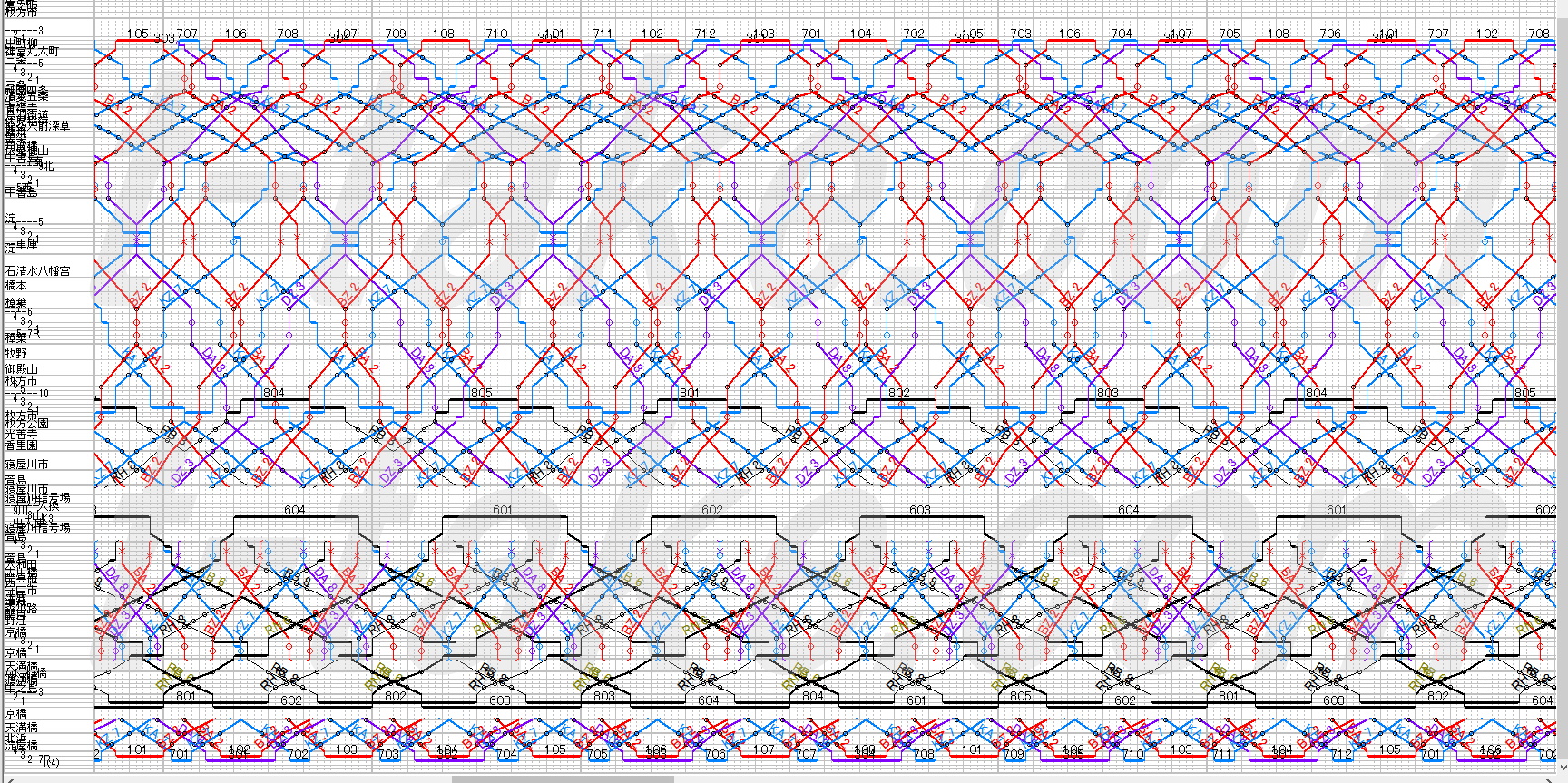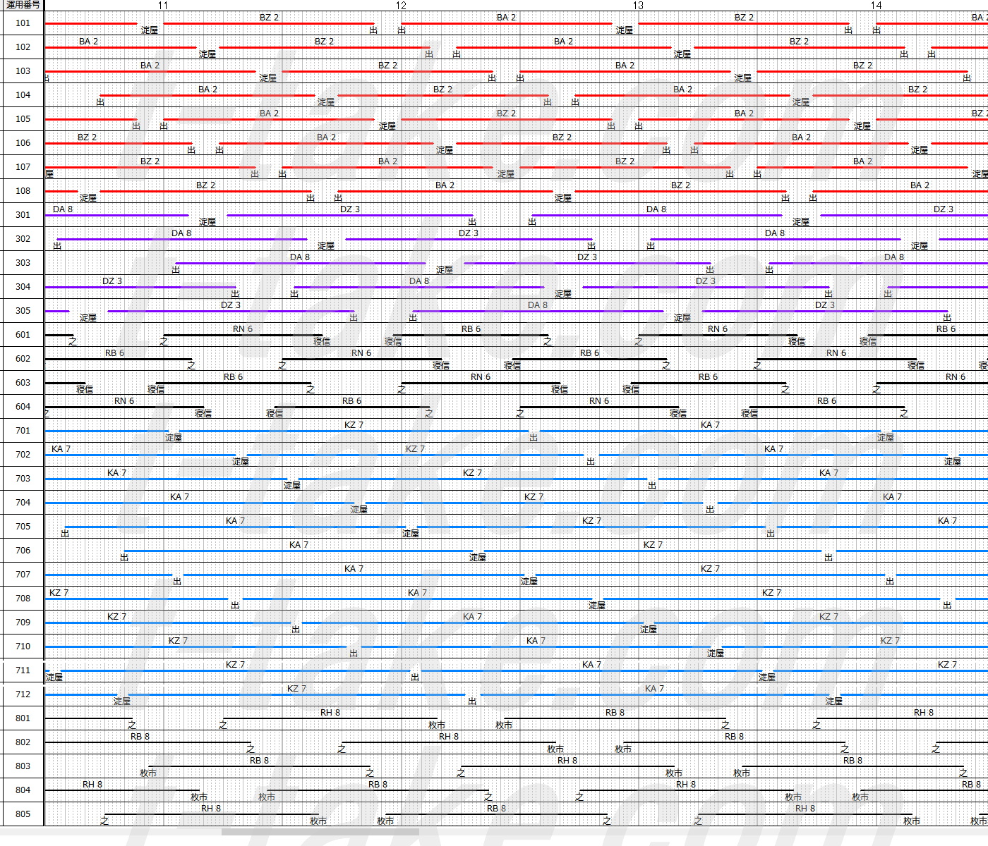 黄色枠がおおさか東線運用となります。全運用201系としても、どうしても前後に大和路線運用が絡みます。都合10運用となり、現状19運用比較で9運用減となる予想です。