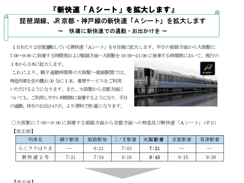 201系の記載はプレスにはなく、現役続行は確実の模様です。大和路線内のみとなるでしょうが、土休日早朝にある、始発加茂行の201系継続も気になります。これで、東線運用と、網干から221系の転入、直通快速用8両編成組替がどれくらいになるかでしょう。