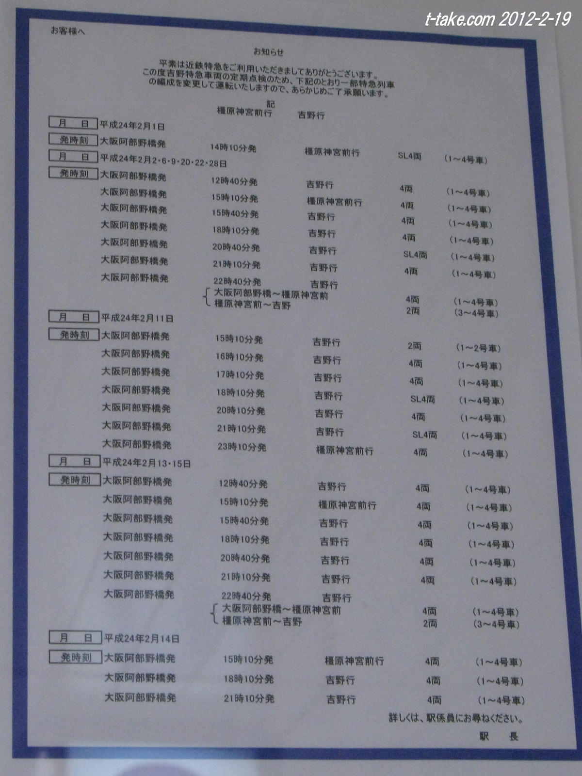 【画像】主要駅の変更掲示にも注目、画像は古いですが、大阪阿部野橋駅「2022-4-23変更」は、中途半端なままですし、2024/3/16,2025/2/22も運用調査が出来ませんでした。PL花火の2020年以降の未実施もありますが、心理的な余裕も含めて、なかなか余裕がなかったのが課題でした。今回も未定ですが、色々と余裕があれば、という所です。