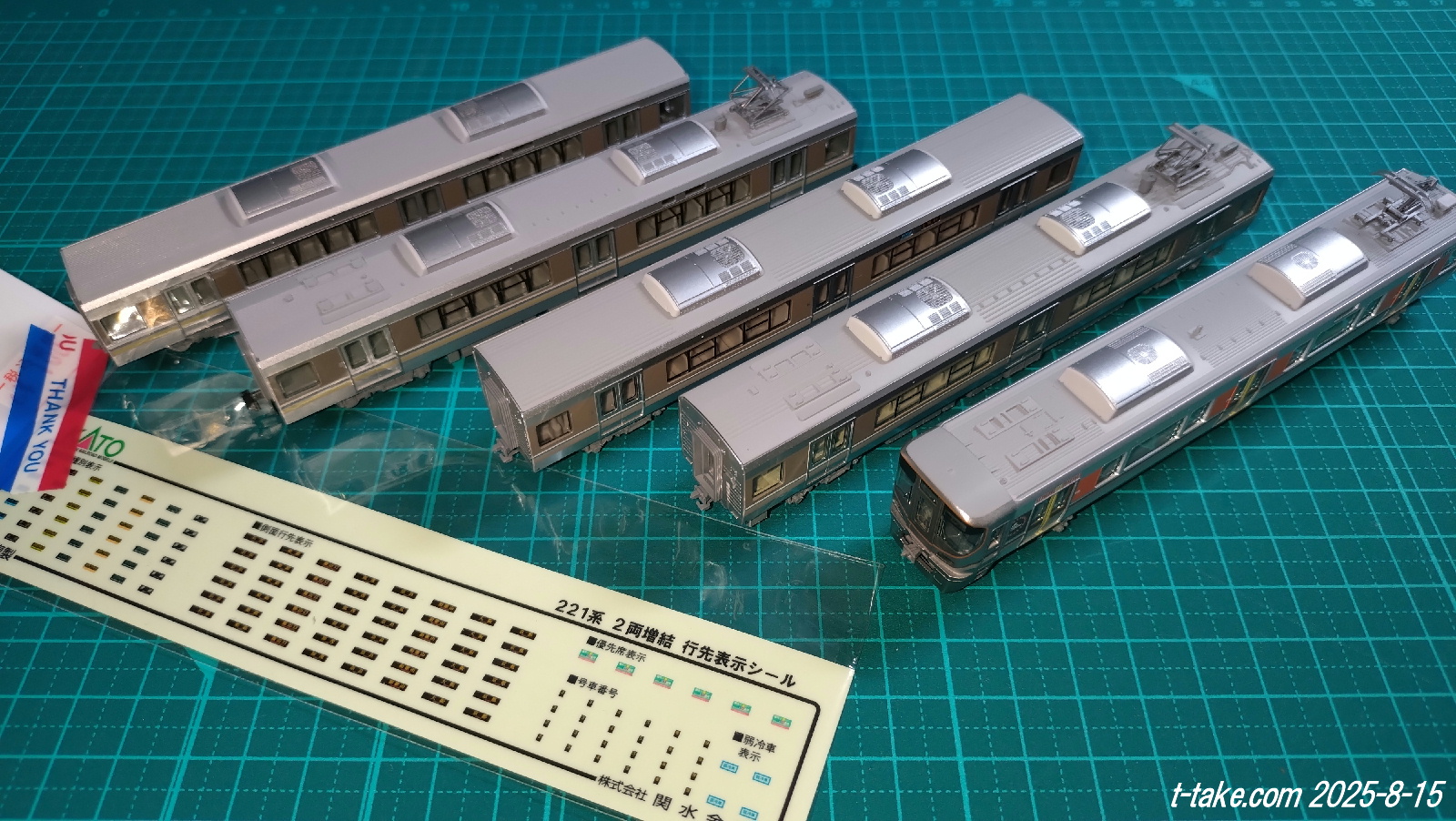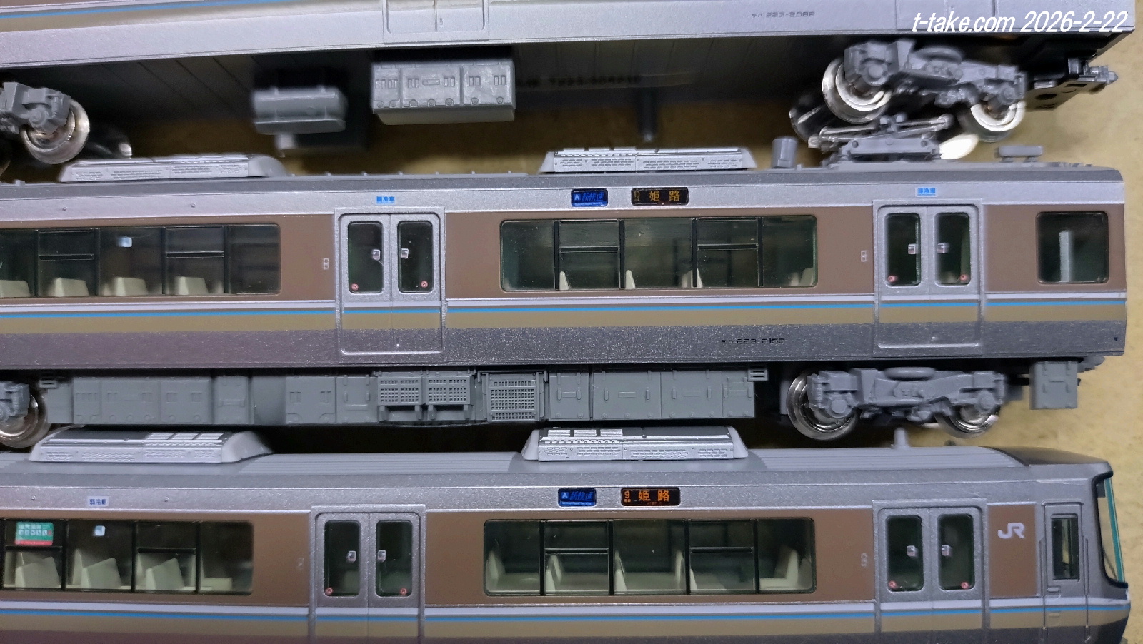5000系サハ、223系2000代TOMIXモハ、上述のKATOサハとモハ中間、TOMIXクモハ323系、シール