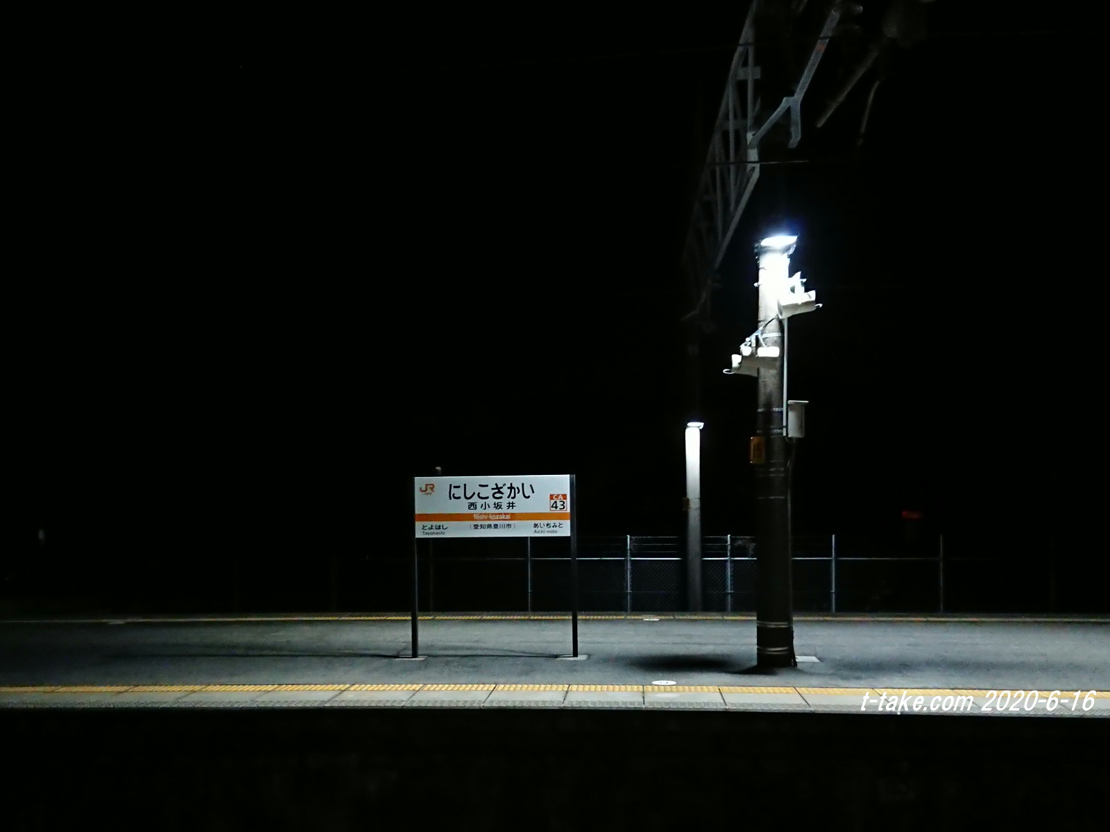 【画像】真っ暗闇にLED灯…、夜間の西小坂井駅