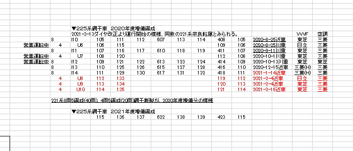 まず、これにより、2021年改正で、221系網干車で、8両4運用、4両3運用の223/225系運用化は濃厚といえます。221系は8両5編成、4両3編成となりますが、4両はさらに2編成増備となりました。