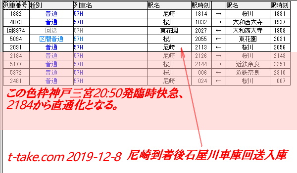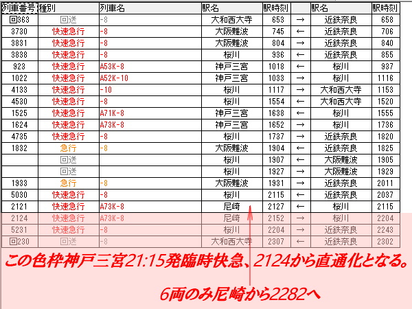 今回は、山陽姫路側でも確認する必要があります。更に、阪神関係は、準備作業でダイヤグラムの作成はせず、先に、取り急いで「運用表」となっておりますので、山陽の4,3両は、少し時間が必要です。「後回し」となっておりますが、何れ、当方でも把握の予定です。