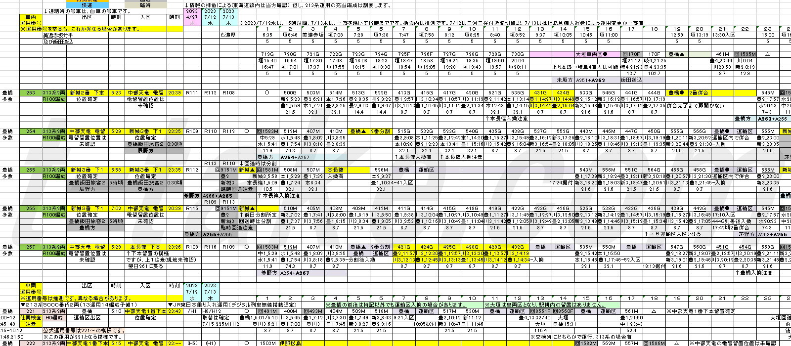 回送列車も裏取りが充分に出来ております。特に、暫定の運用表で「OK」とある分は、待避も含めて、ほぼ確定です。「OK」がない分も確実ですが、今後も裏取りに努めます。
