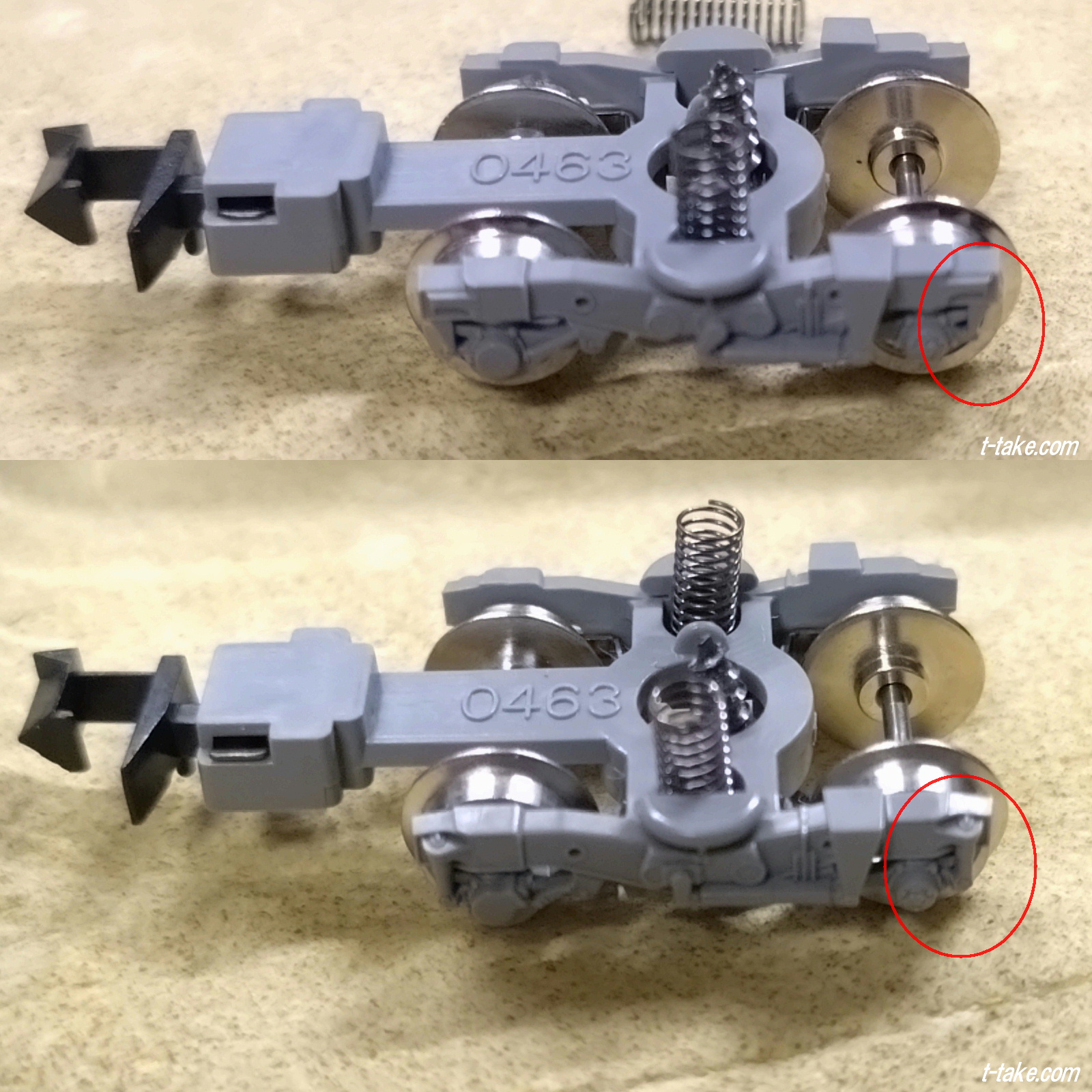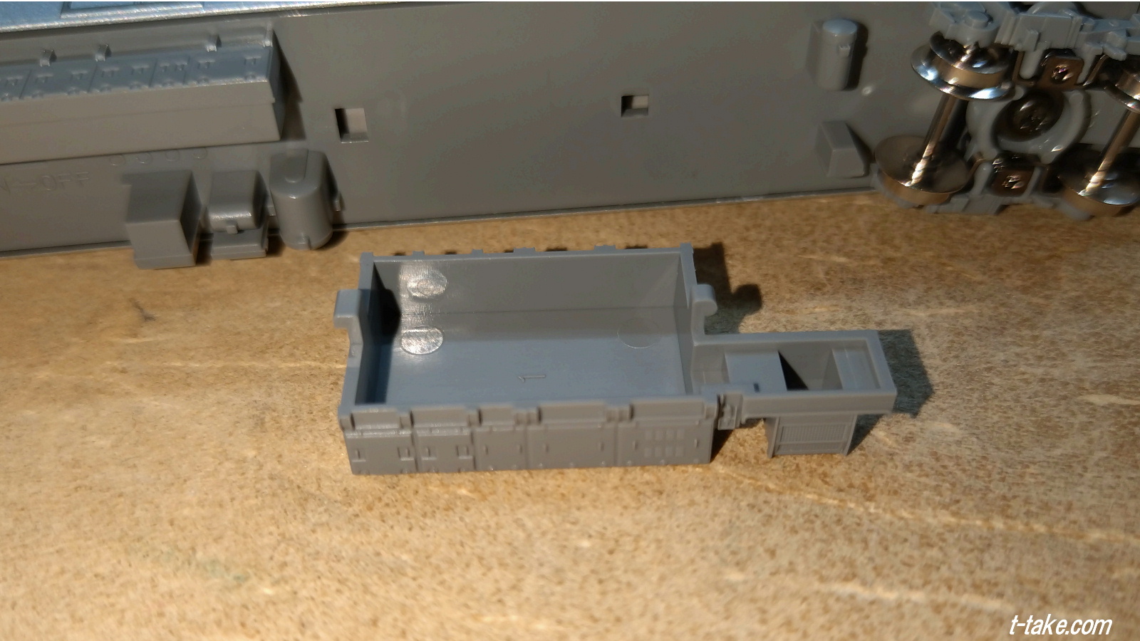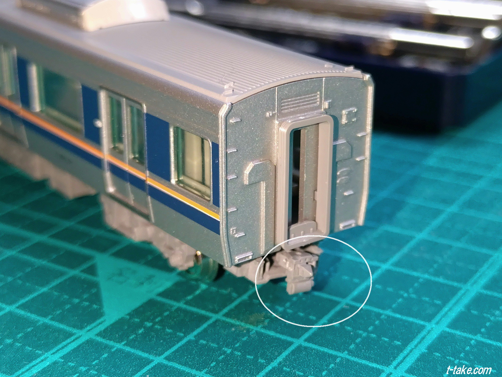 但し、実車は密着連結器にジャンパー線接続のため、電連ではありません。不要になったTNカプラーの再利用と、その目印にもなっています。