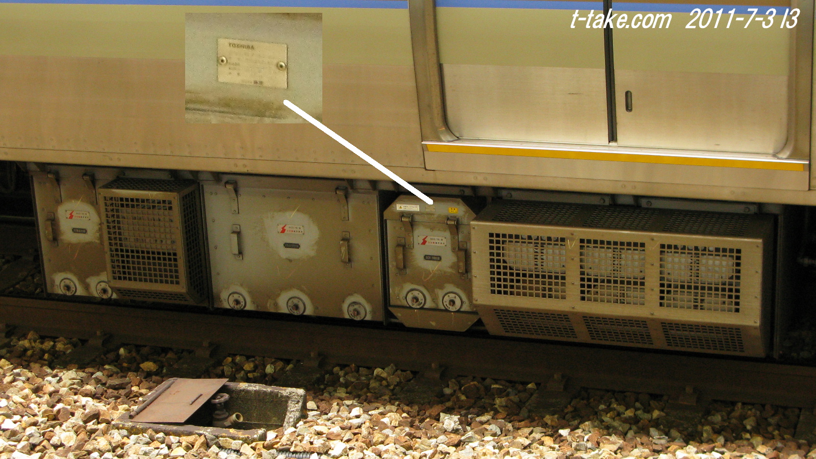 VVVF装置で、外観での簡単なメーカー区別は、上記の通りですが、更に正確には、製造銘板も確認したい所です。上手く、満足に確認出来る駅は、舞子駅の外側程度か、四条畷駅、川西池田駅、塚口駅の電留線など、合法的に、床下機器が近くで確認出来る場合となります。