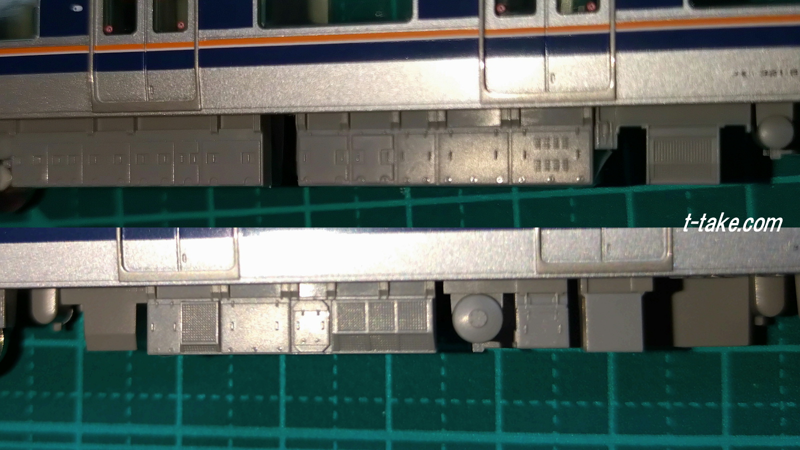 床下機器のメーカーで、模型が取り換えられるような方法がありませんが、どうしてもならば、自前で、3Dプリンター等の加工でしょうか。これでは難易度が上がりますから、現状のTOMIX、東芝製VVVF床下を生かす方法が、色々と便利でしょう。